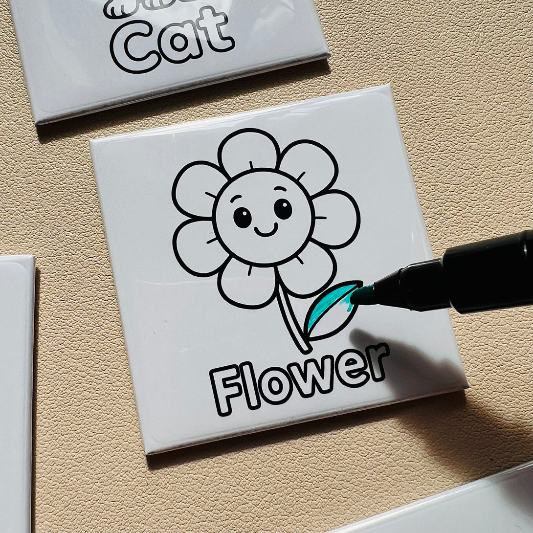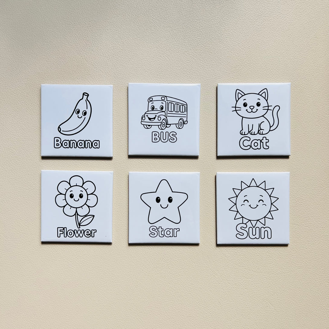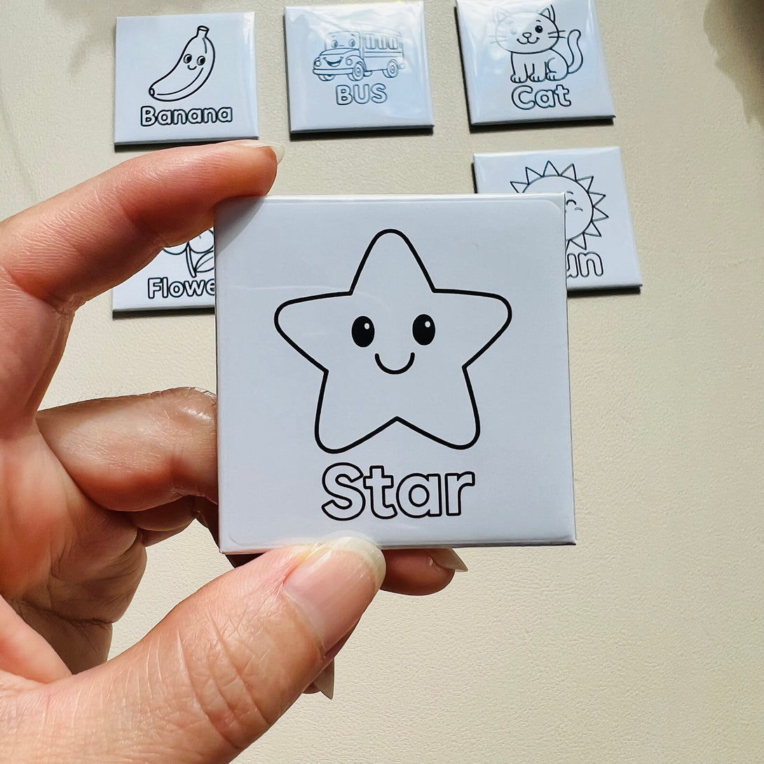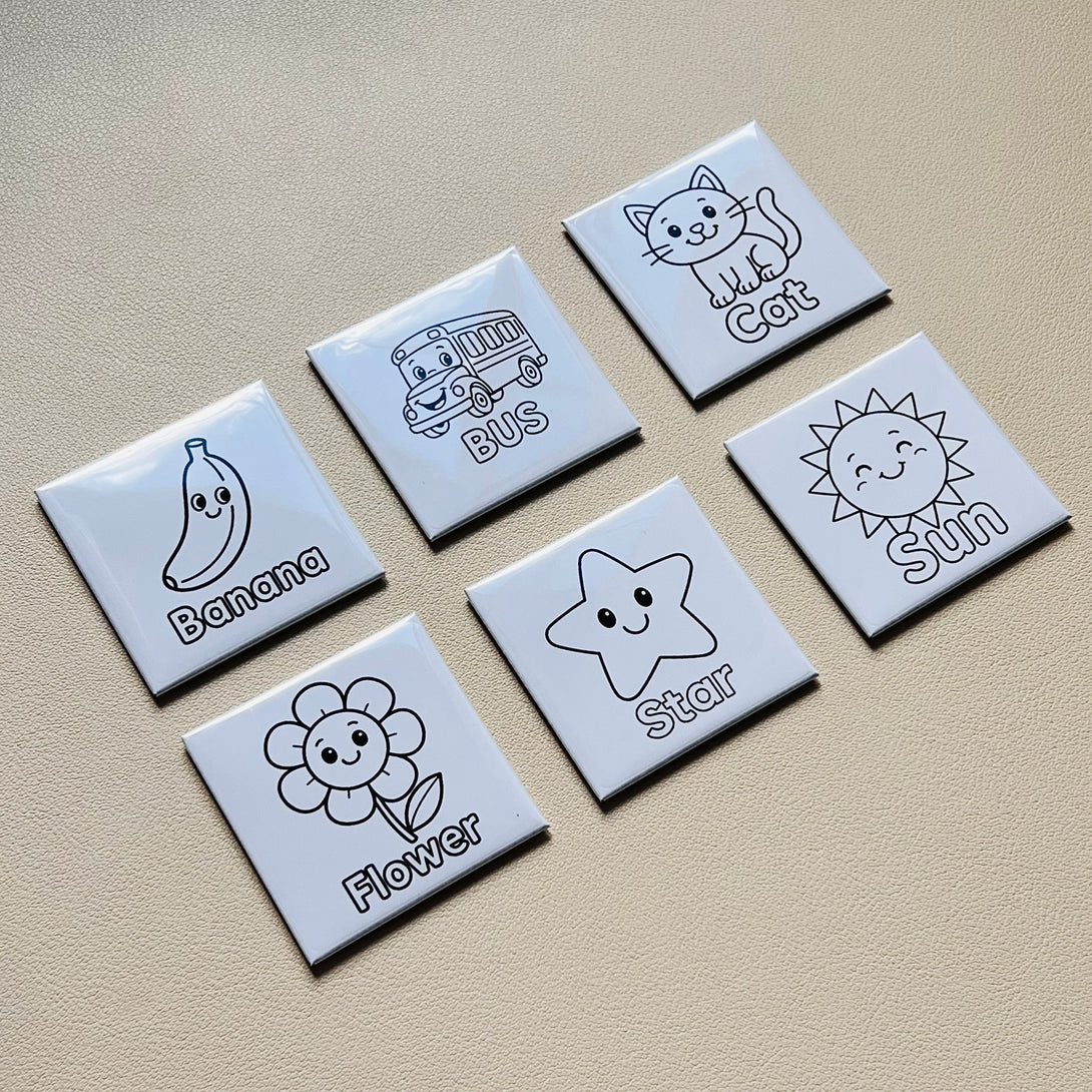 Try this fun and unique alternative to coloring books. Each magnet comes with an image that is easy for small hands to color in. When coloring is complete, simply erase and reuse them.